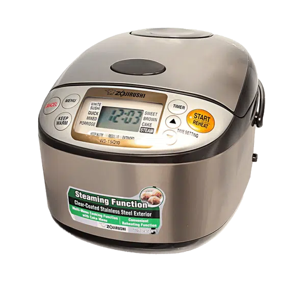 NS-TSQ10 mempunyai pilihan berbilang menu yang menggunakan teknologi logik Fuzzy Micom (berkomputer mikro) untuk mengawal suhu untuk memasak secara cekap pelbagai jenis nasi termasuk nasi putih, sushi, bubur dan beras perang. Terdapat juga ciri memasak pantas pada model ini. Cip komputer mikro di dalam NS-TSQ10 secara automatik membuat pelarasan pada suhu dan masa pemanasan - ia memastikan nasi yang sempurna setiap masa. Inilah yang kami panggil 'faktor yum'.